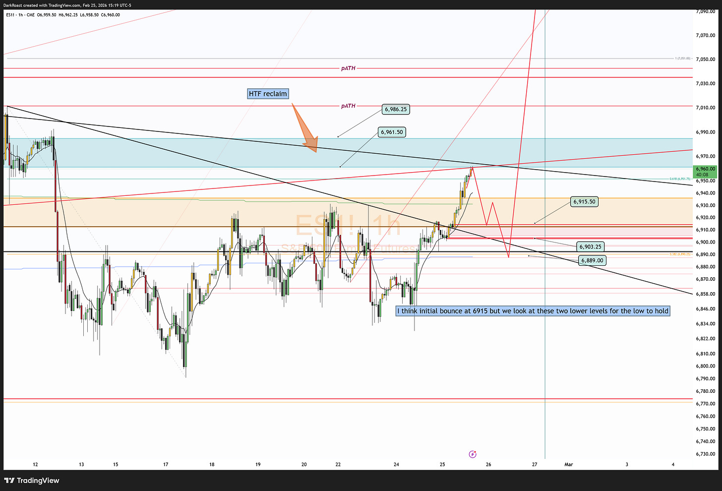 Trade plans aren’t set in stone. They need to be confirmed in real time by the various mechanisms to move price ie failed breakdowns, breakouts, back tests, support/resist flips, sweeps etc. All of these concepts are outlined with examples in the articles pinned to the top of the Substack.