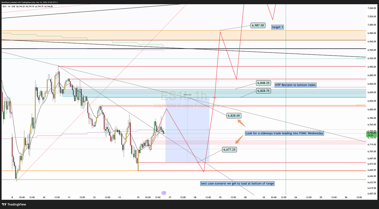 Trade plans aren’t set in stone. They need to be confirmed in real time by the various mechanisms to move price ie failed breakdowns, breakouts, back tests, support/resist flips, sweeps etc. All of these concepts are outlined with examples in the articles pinned to the top of the Substack.
